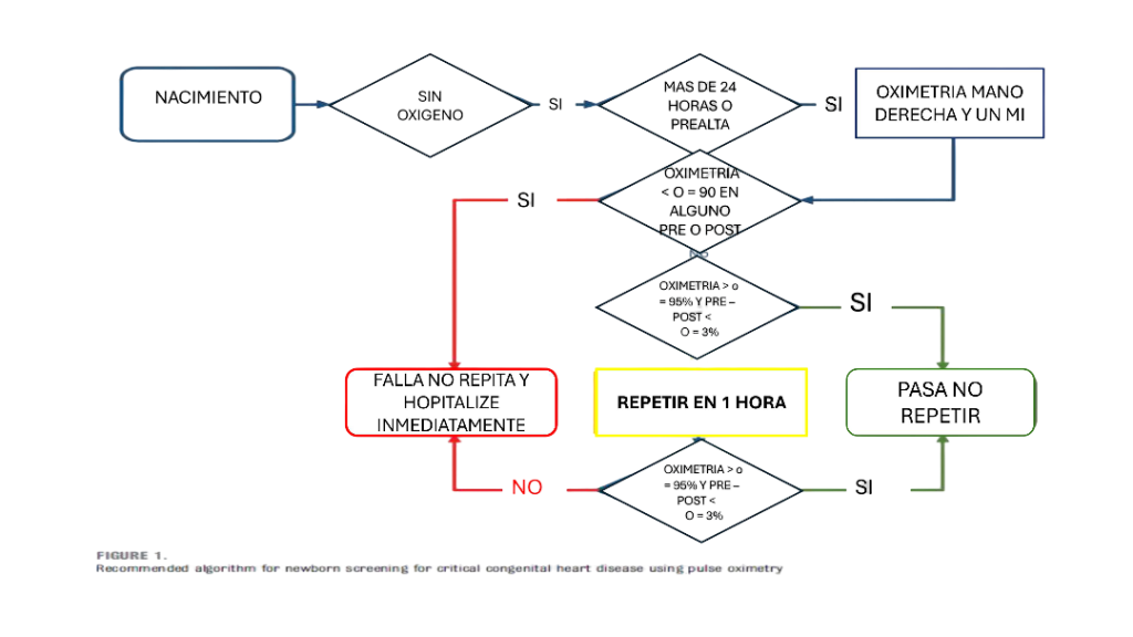REFERENCIA (28) Mahle, W. T., Martin, G. R., Beekman, R. H., Morrow, W. R., Section on Cardiology and Cardiac Surgery, & Committee on Fetus and Newborn. (2025). Newborn screening for critical congenital heart disease: A new algorithm and other updated recommendations: Clinical report. Pediatrics, 155(1), e2023063770. https://doi.org/10.1542/peds.2023-063770