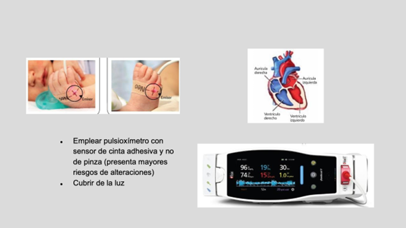 - Emplear un pulsioxímetro adecuado para neonatos, con sonda .